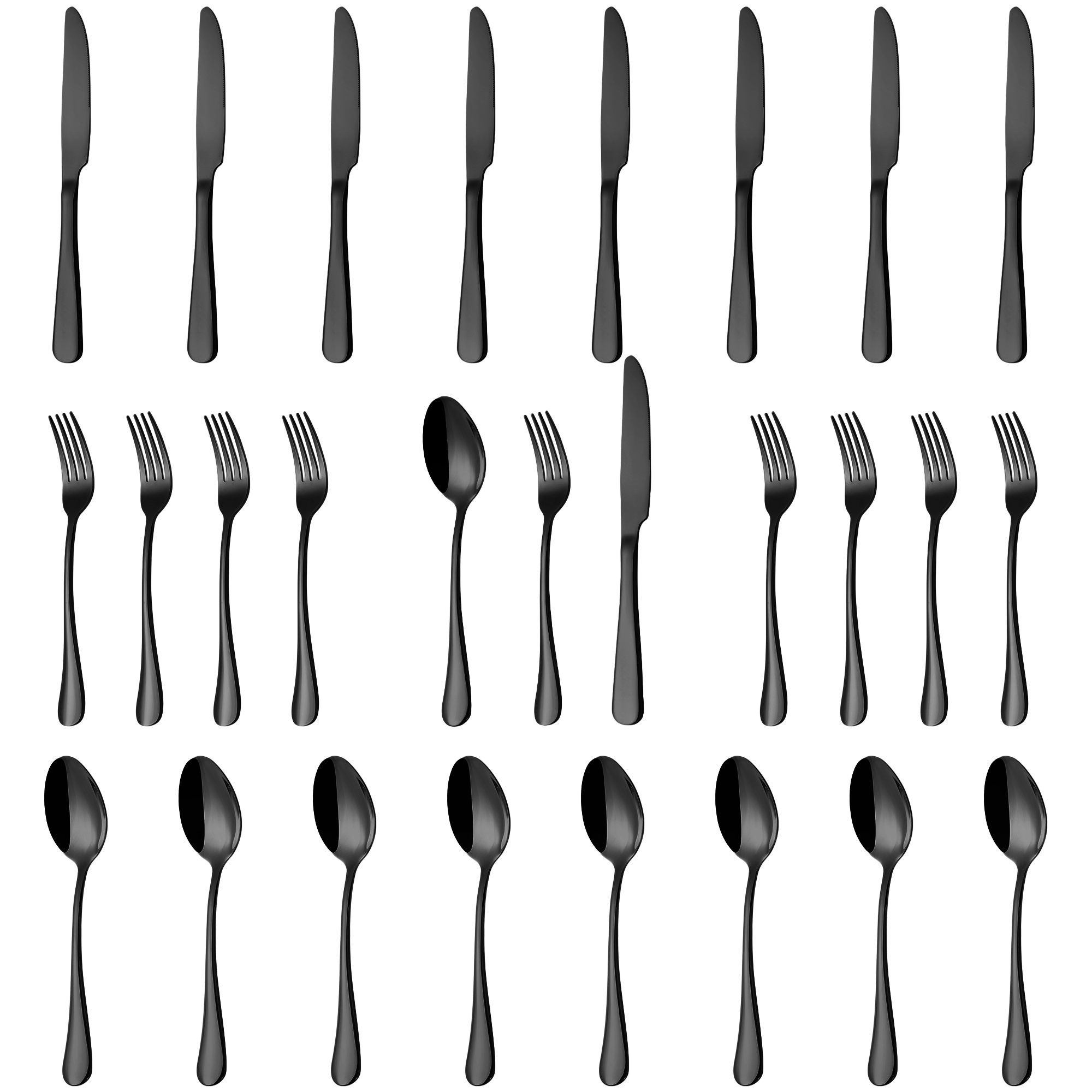 Maak jouw tafelsetting compleet met deze stijlvolle bestekset zwart voor 8 personen. De 24-delige set bevat 8 vorken, 8 messen en 8 lepels – perfect voor hoofdgerechten en dagelijks gebruik. De moderne zwarte hoogglans afwerking geeft je eettafel een eigentijdse, luxe uitstraling die indruk maakt bij elke gelegenheid.